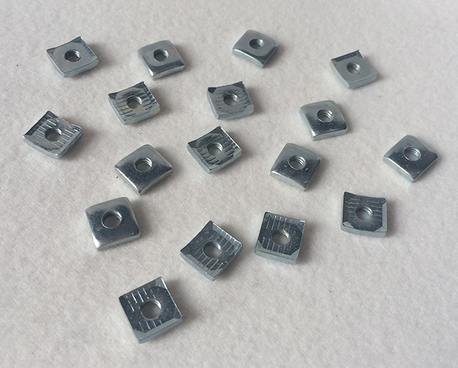 方形螺母置于型材槽內(nèi)任意裝配點(diǎn),背部彈片能固定它的位置,更可靠地緊貼型材,適用于30、40、50、60系列,重型型材除外。